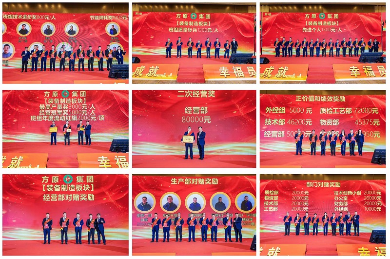 第三章节:表彰兑现大会(第一环节:装备制造板块表彰兑现;第二环节:盛桥方垠板块表彰兑现;第三环节:工程施工板块表彰兑现;第四环节:集团公司表彰兑现。)