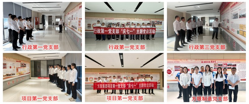行政第一党支部、行政第二党支部、行政第三党支部、项目第一党支部、项目第二党支部、项目第三党支部、项目第四党支部(线上开展)、项目第五党支部、方垠制造党支部、铁鹰党支部围绕“庆祝党的生日,我该怎么做”、“立足岗位作贡献”、“党建+项目”和“党业深度融合”等主题组织开展专题座谈会进行深入研讨,认真组织党员学习习近平总书记重要讲话精神、讲授专题党课、深入学习研讨企业文化,并集体重温入党誓词等。