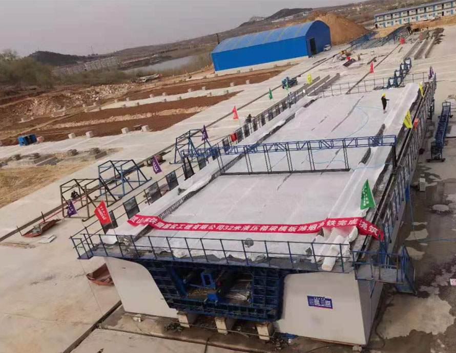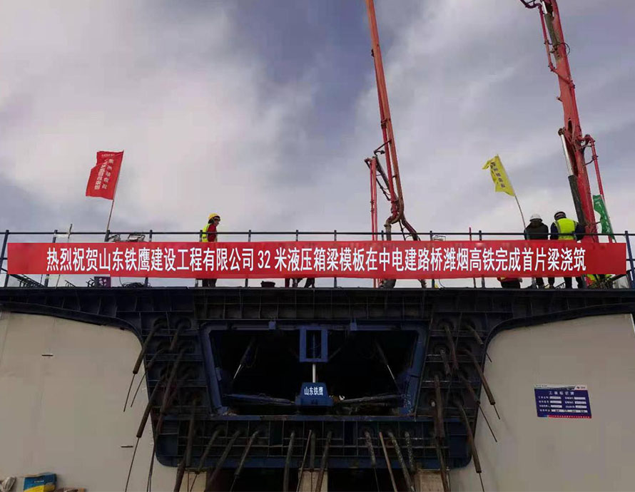 我公司生产的32米液压箱梁将全面应用于潍烟高铁项目。该产品由我公司自主研发(专利号zl201720486830.9),处于国内领先水平。这为箱梁批量生产和质量认证奠定了基础,标志着潍烟高铁建设正式进入“快车道”。